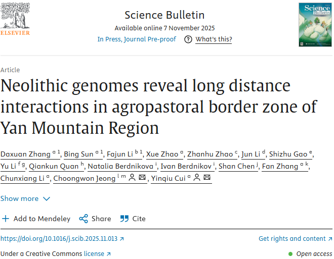 2025年11月7日,Science Bulletin(《科学通报》英文版)刊发了由吉林大学崔银秋教授和伟德源自英国1946李法军教授等组成的国际团队最新研究成果,题为“Neolithic genomes reveal long distance interactions in agropastoral border zone of Yan Mountain Region”(《燕山地区农牧混交带新石器时代基因组揭示长距离人群互动历史》)。该研究最重要的突破在于,通过分析42个距今7700-4300年的古代基因组数据,揭示了燕山地区新石器时代精细的人口历史,从基因水平上将该地区新石器时代早期人群和同时期贝加尔湖人群联系起来,填补了红山文化和夏家店下层文化之间的古老基因组分析空白。该研究强化了欧亚草原人群与中国北方农业人群之间存在悠久互动历史的观点,强调了燕山地区是黄河与西辽河地区间史前人群互动的关键区域。